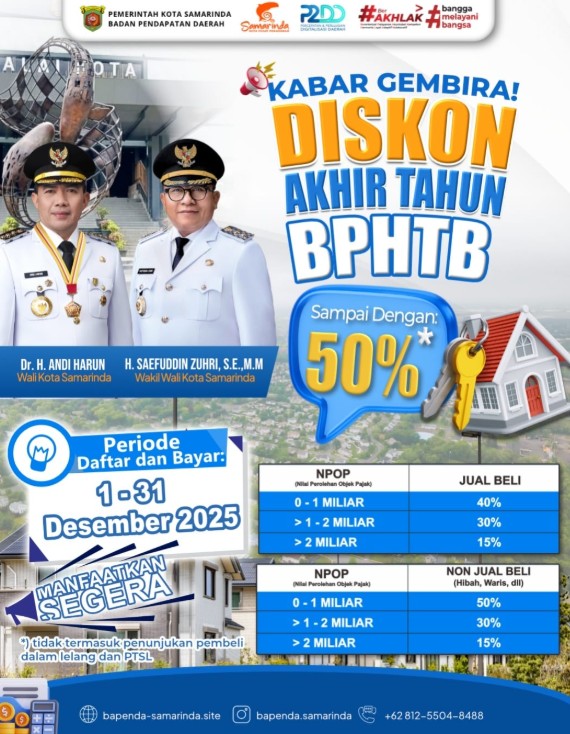 “Diskon BPHTB ini kami berikan sebagai bentuk kemudahan bagi masyarakat. Mumpung potongannya besar, kami imbau warga agar memanfaatkan momentum Desember ini untuk menyelesaikan kewajibannya,” ujarnya.