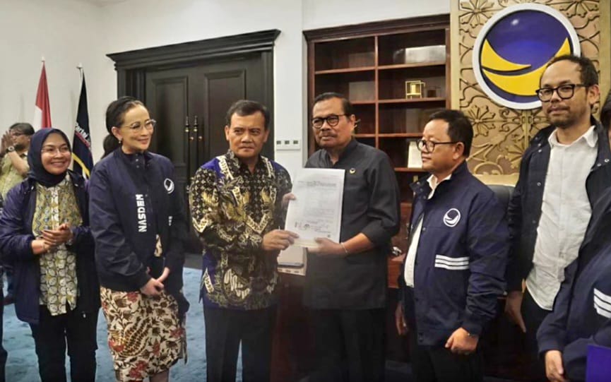 Dalam penyerahan tersebut, HM Prasetyo yang juga mantan jaksa agung, didampingi oleh sejumlah pengurus DPP Nasdem, seperti Lestari Moerdijat, Sugeng Suparwoto, dan Amelia Anggraini.